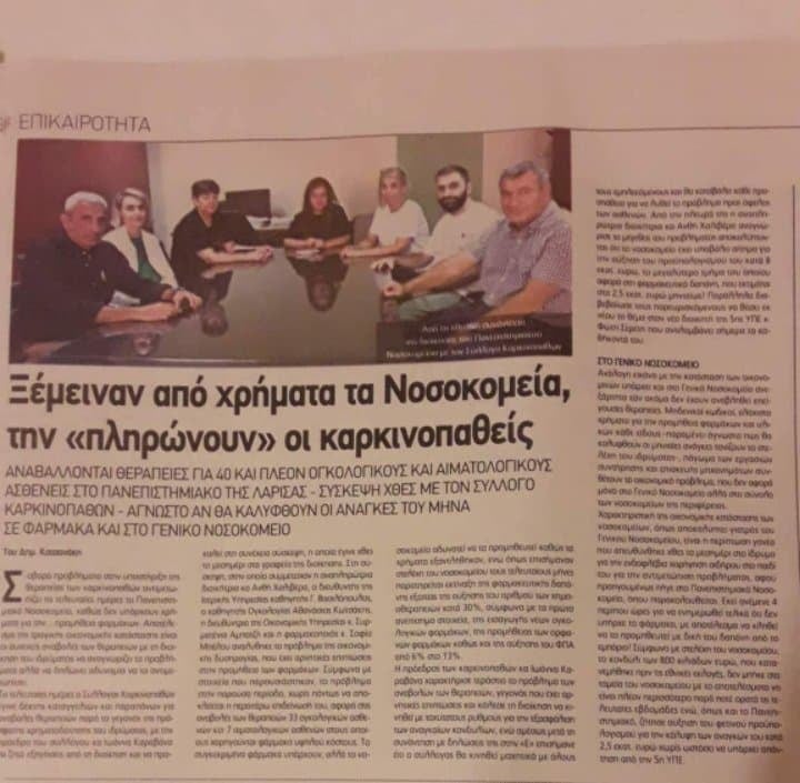Ο Σύλλογος Καρκινοπαθών Λάρισας συνεχίζει να δίνει καθημερινά μάχες.
