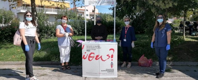 Ο Σύλλογος Καρκινοπαθών Λάρισας βρέθηκε το πρωί της Κυριακής στο Πολιτιστικό κέντρο του Πυργετού στην πλατεία ‘’Βάϊος Μαλλιάρας ‘’ και ενημέρωσε τον γυναικείο πληθυσμό του χωριού για την σημασία της πρόληψης του καρκίνου του μαστού. Ευχαριστούμε θερμά τον Σύλλογο Γυναικών Πυργετού , τον Δήμο Τεμπών καθώς και την Δημοτική Βιβλιοθήκη Ραψάνης για την φιλοξενεία. [...]